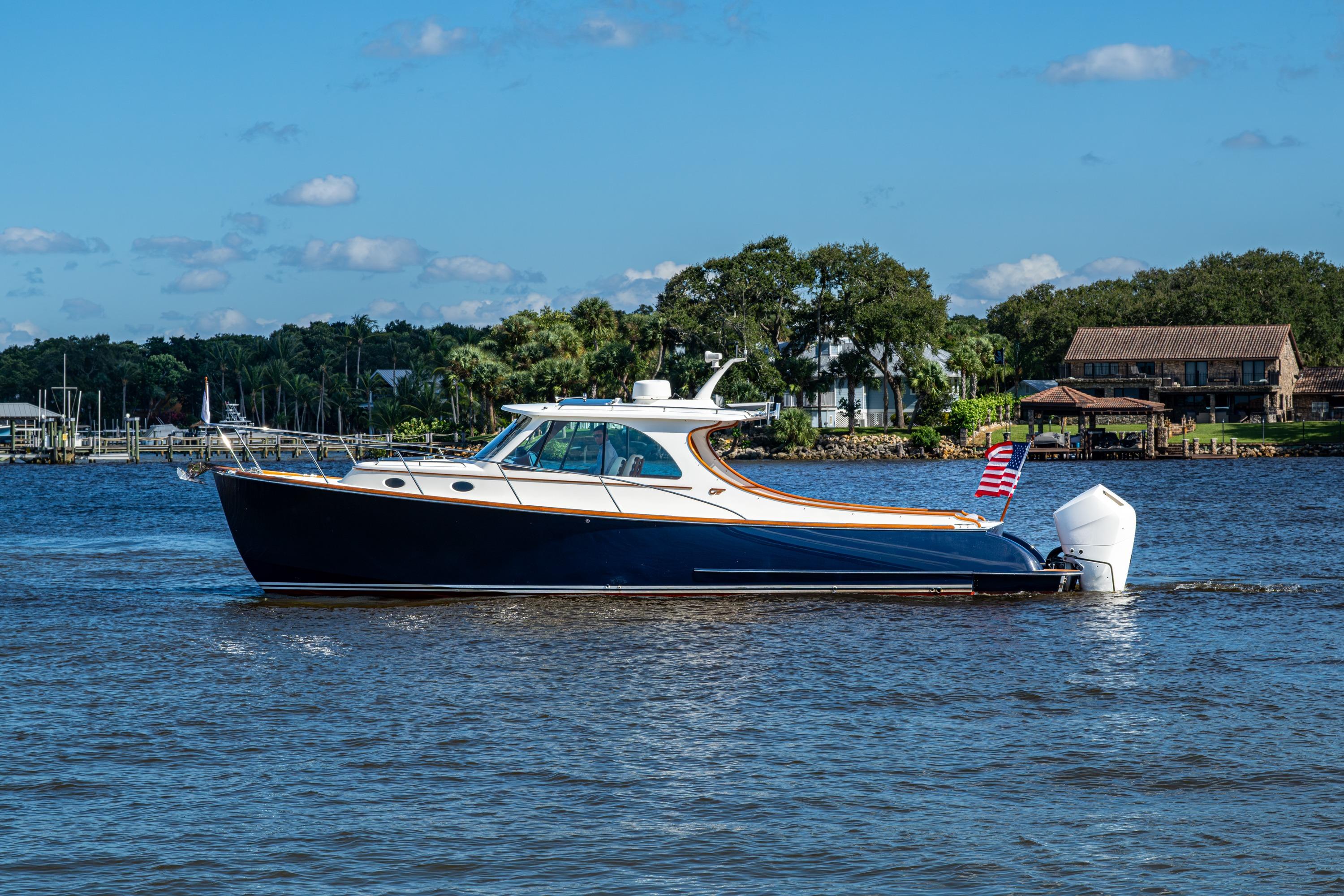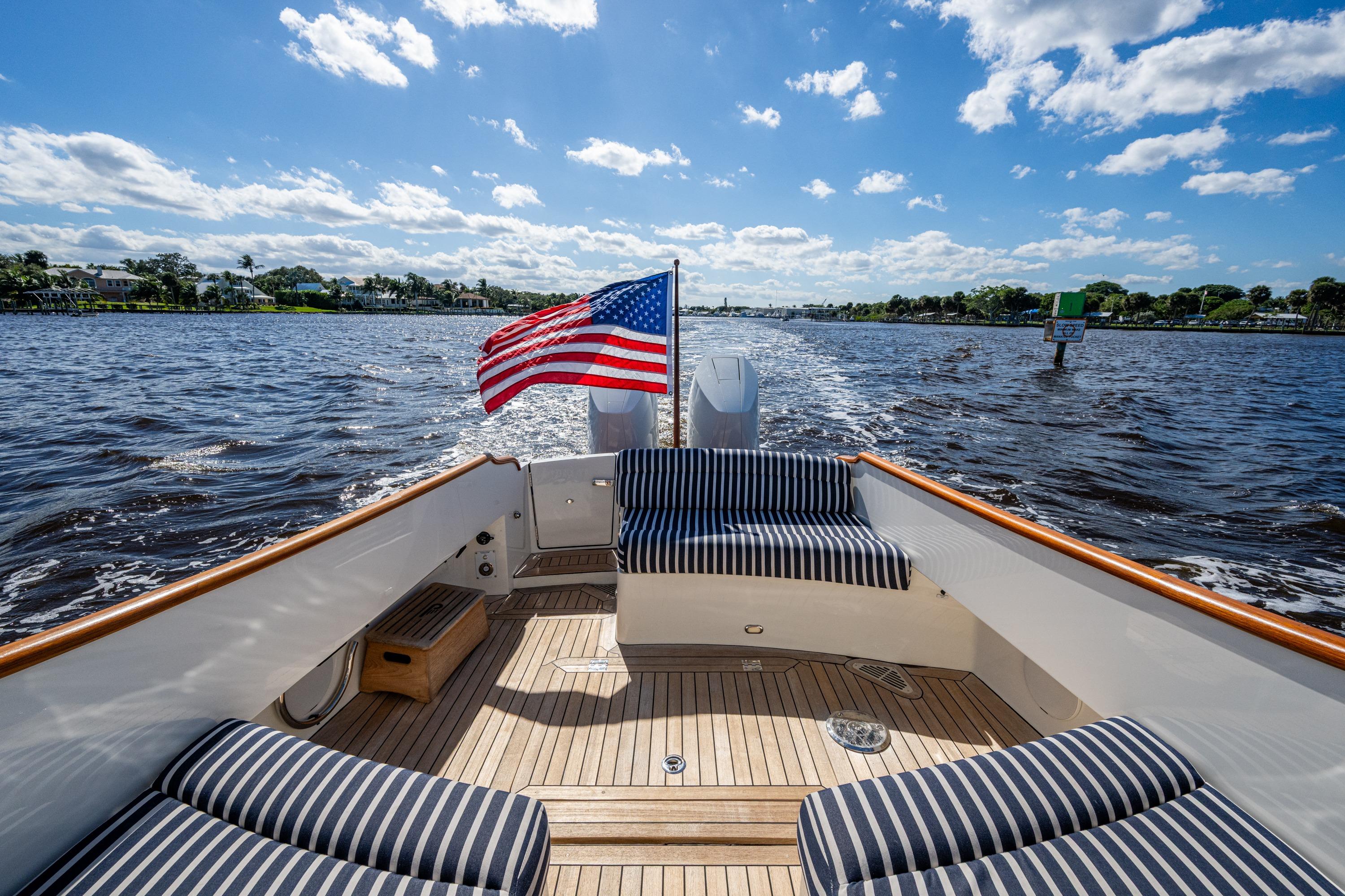 KING’S LANDING is a highly optioned Hinckley 35 featuring the upgraded Mercury V10 350hp outboards with joystick steering, bow thruster, Seakeeper stabilizer system, Garmin electronics, generator, air conditioning, Starlink connectivity, teak decks, flag blue hull paint, and stainless handrails and bow rail. She is Hinckley-maintained and easily shown while in South Florida for the winter.