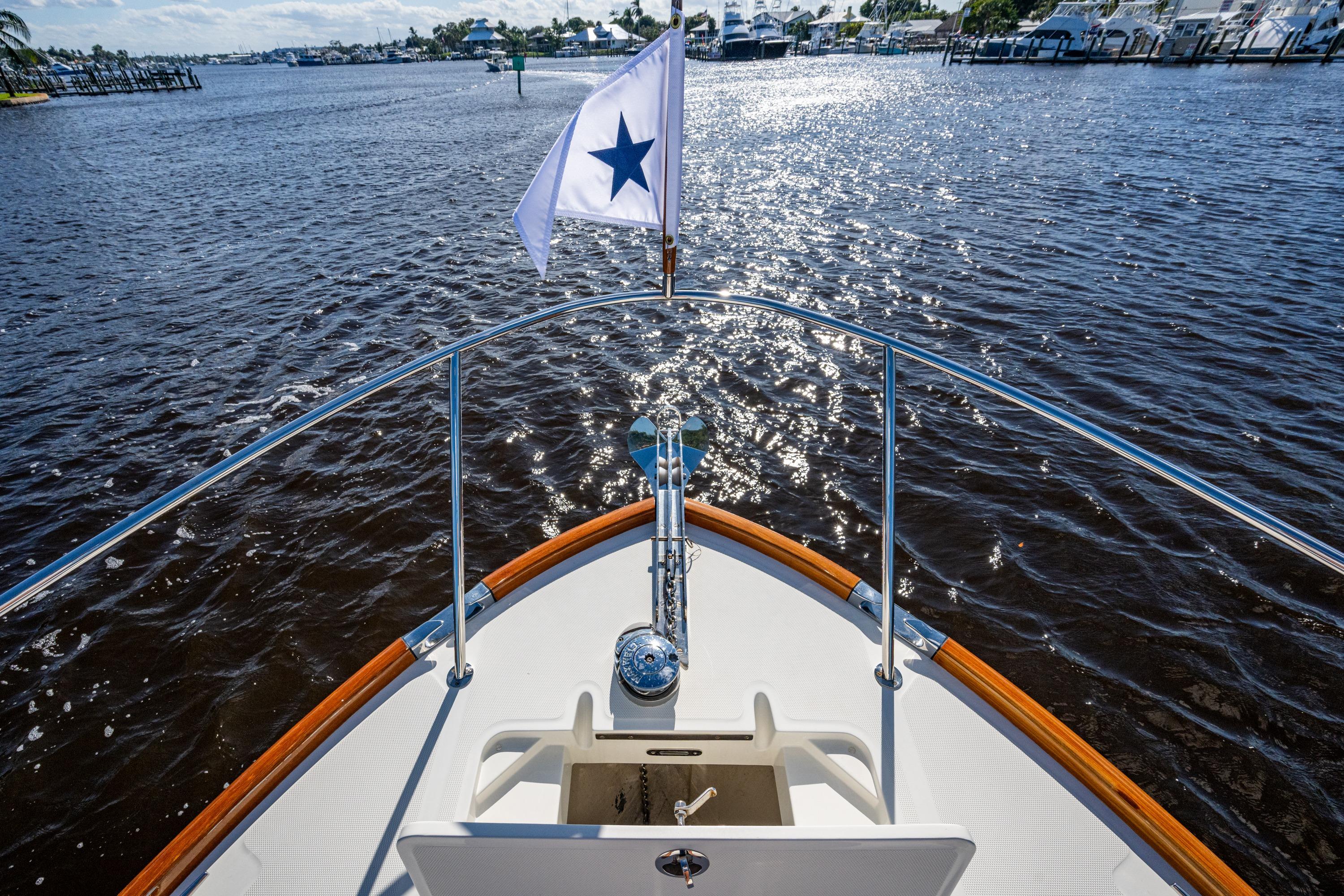 - Natural teak decks in pilothouse, cockpit and swim platform
