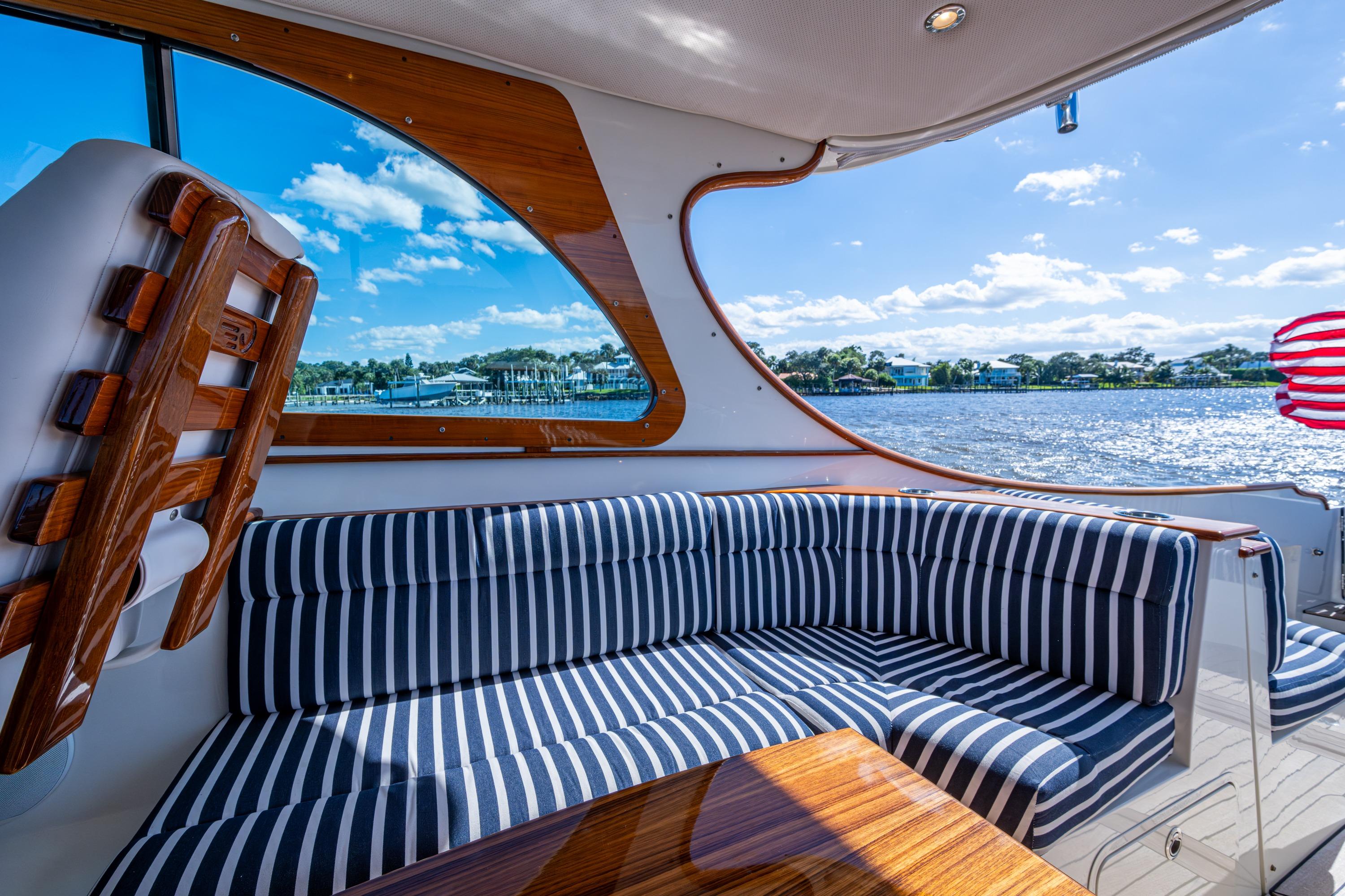 - Two Hinckley custom adjustable ladderback seats port and starboard upholstered with Sunbrella Horizon Ivory marine vinyl