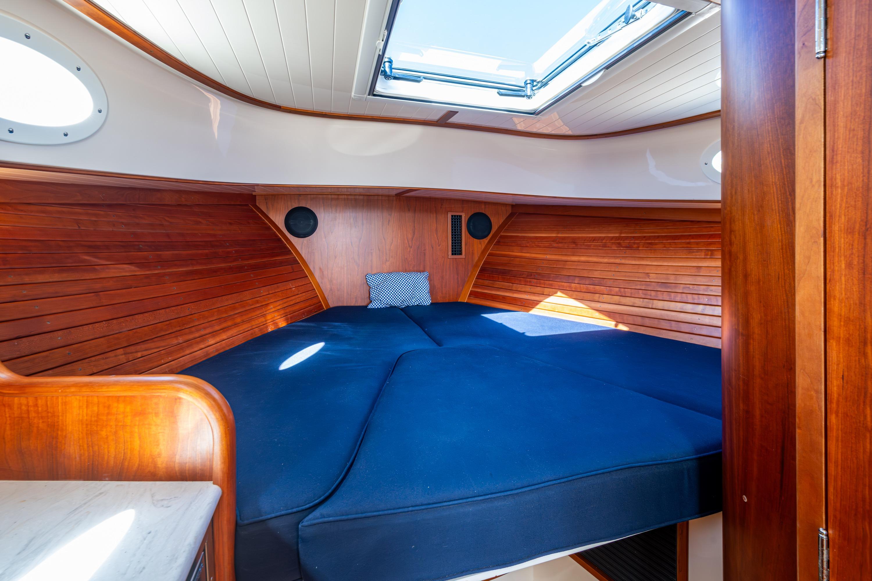 - Storage locker under V-berth has easy-access cherry drop-front door